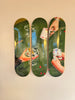 Every set is made to order and hand made using 7 layer maple wood skateboard decks. While these are made out of hardy material, they are not meant to be used as skateboards (trunks and wheel are NOT included).