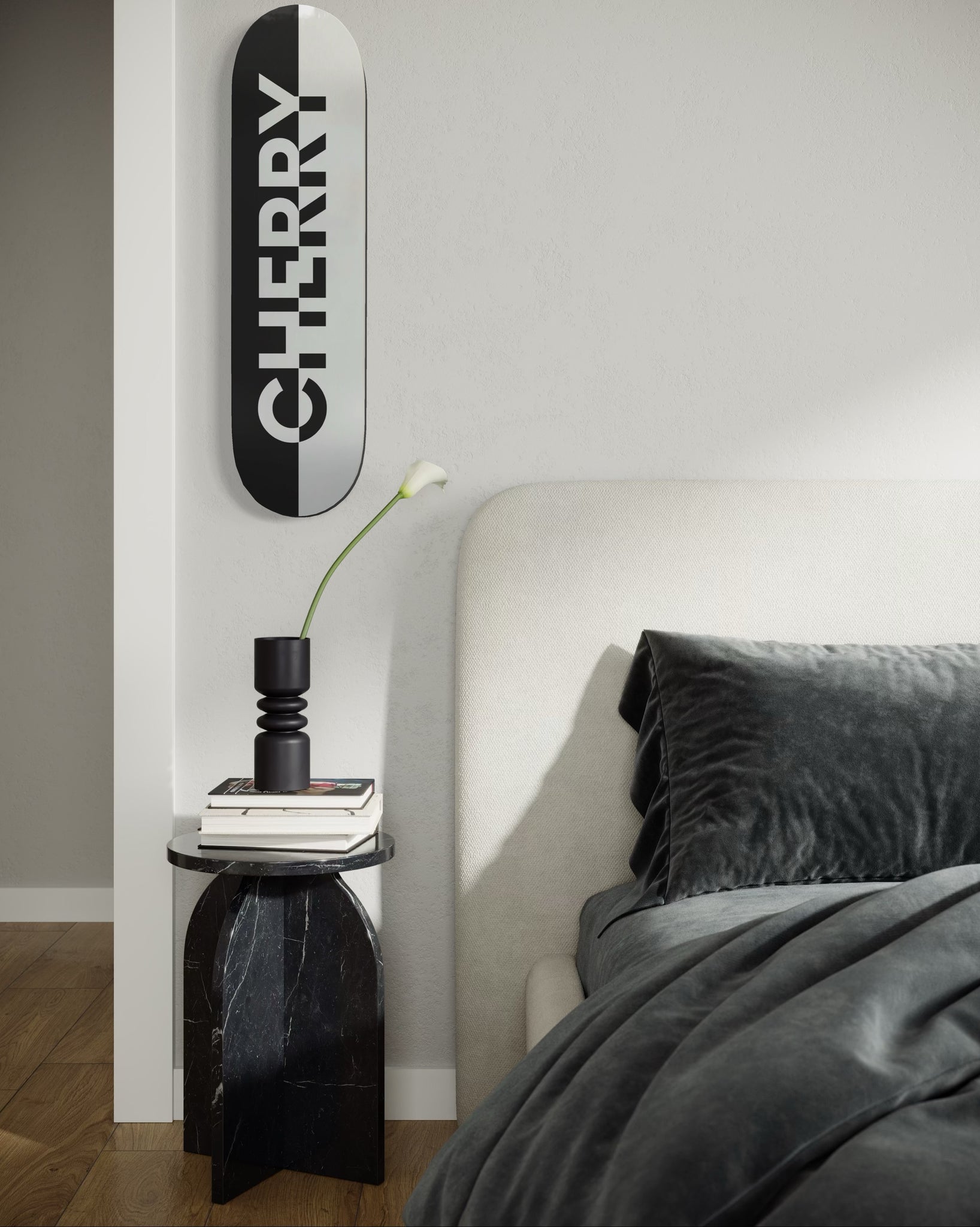 A bold, graphic take on the Manic Cherry logo, split down the middle in matte black and soft ivory. This board is all about contrast, balance, and statement. Perfect on its own or paired in a set, it brings a modern, minimal edge to any space while still feeling iconic and unmistakably Cherry.