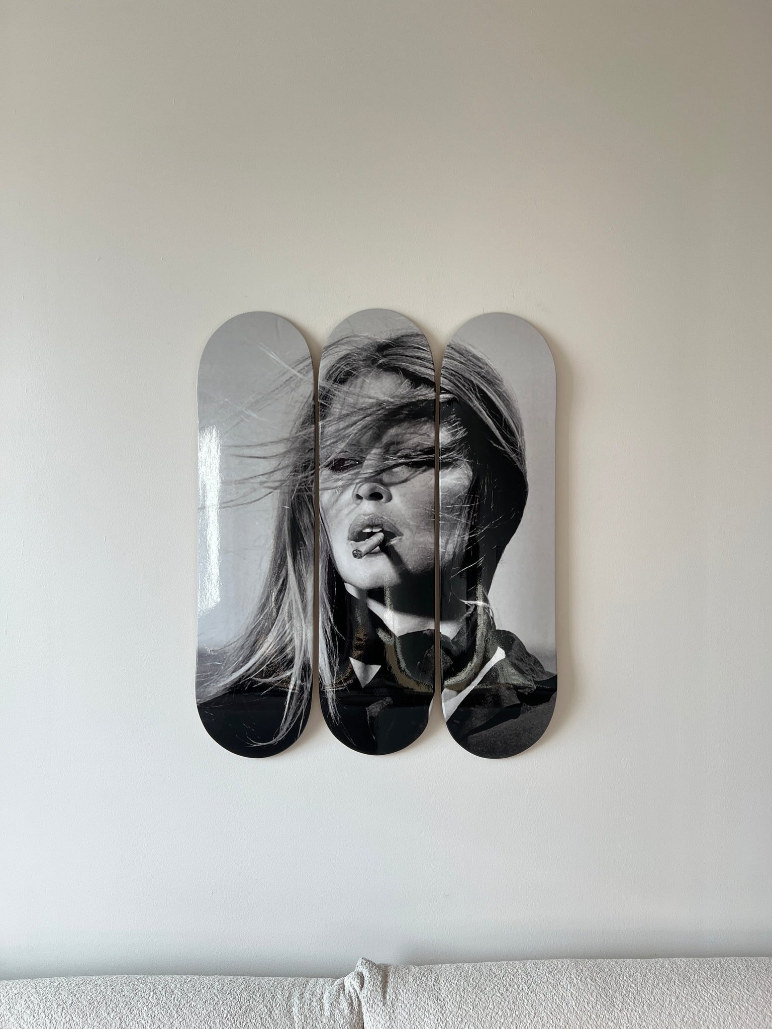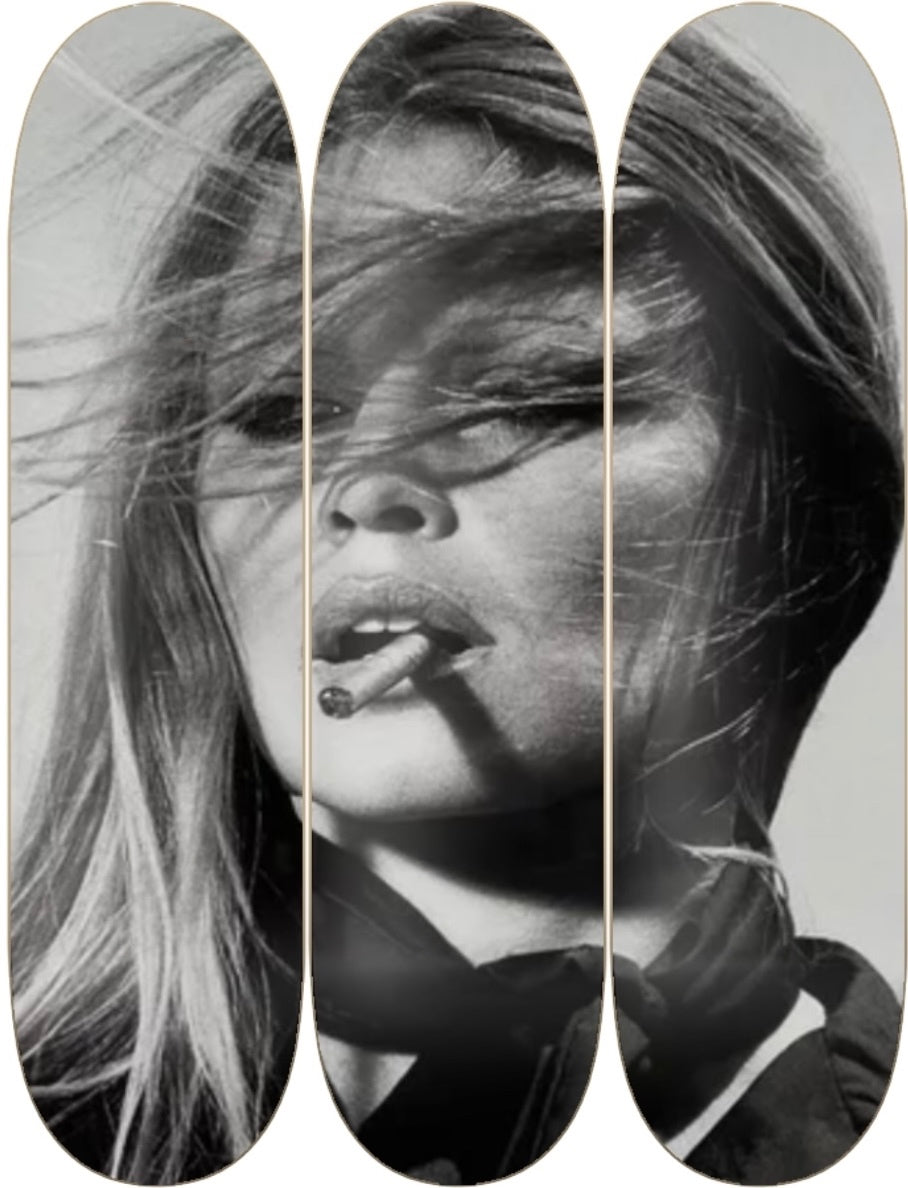 “BB Smoke” Brigitte Bardot captures pure vintage cool — sultry, untamed, and effortlessly iconic. It’s that perfect blend of French allure and rebel energy that never goes out of style.