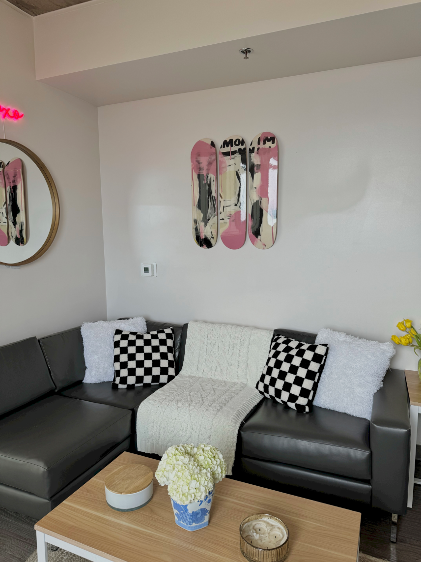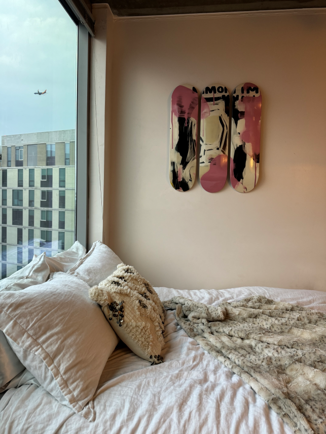Bold drips of pink and black layered over rough brushstrokes — messy, emotional, and totally on purpose. It feels like a thought mid-sentence, raw and unfinished in a cool way. Abstract art that doesn’t try to explain itself.