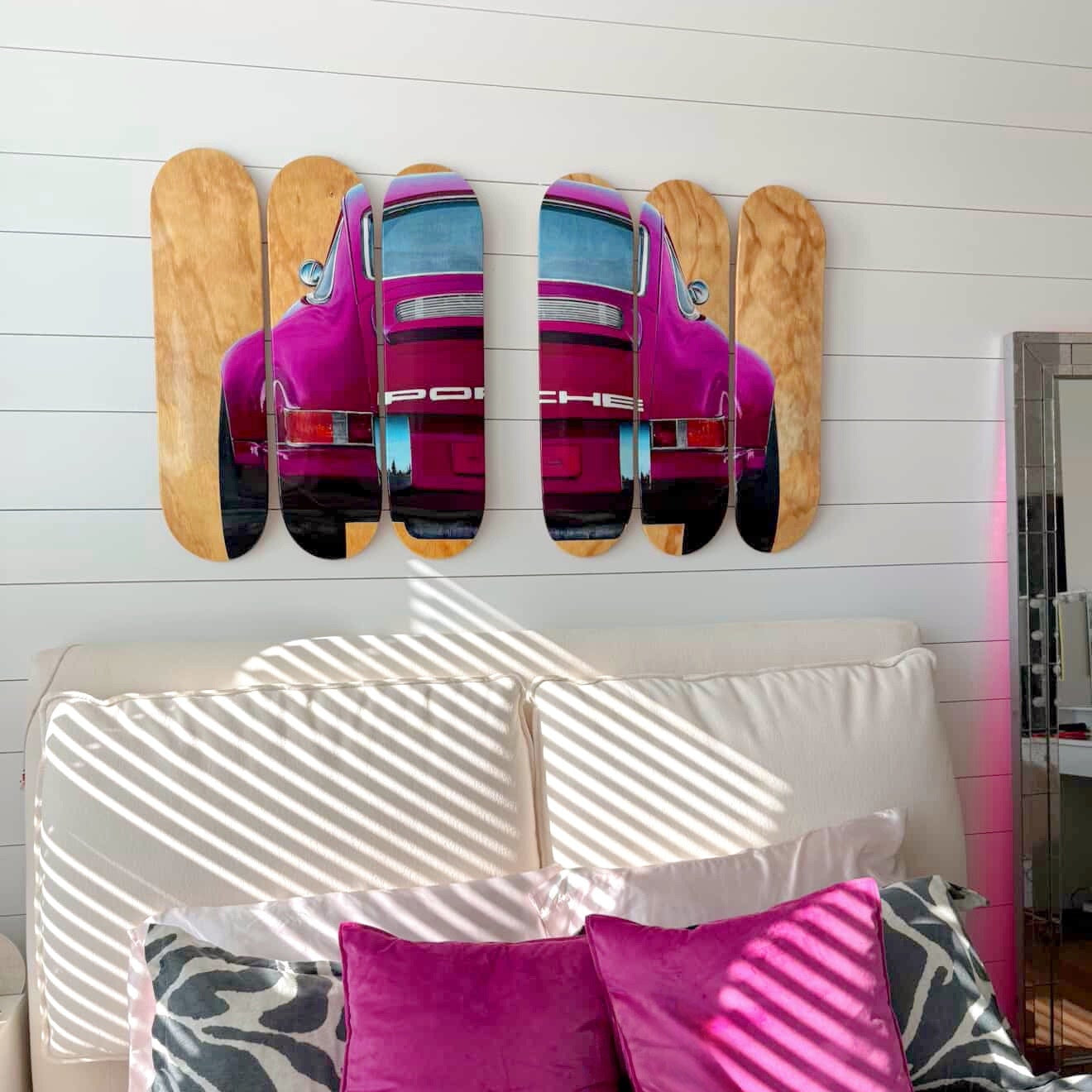 The left half of the SHES A RUBY STAR duo — a deep magenta captured in that glossy, iconic rear view. Bold, retro, and pure car fantasy. Designed to pair with the right but strong enough to live on its own.